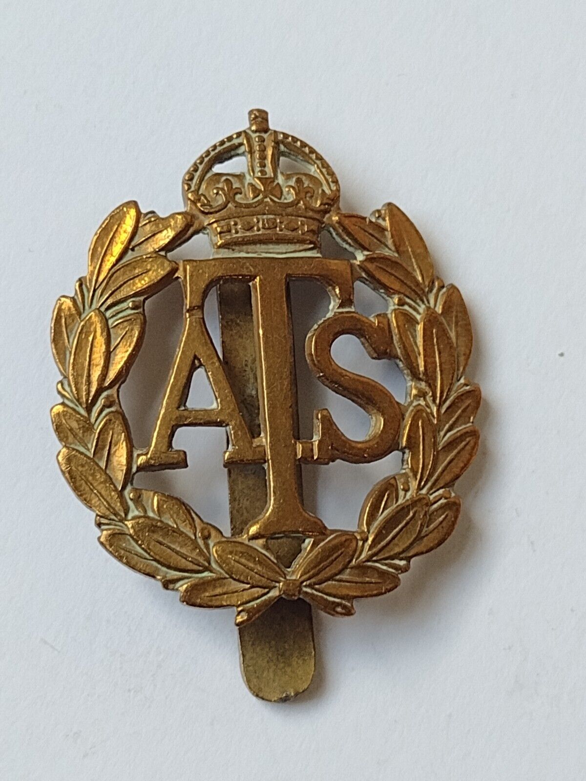 Auxiliary Territorial Service Cap Badge KC Brass Slider 40mm Antique Original