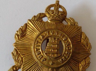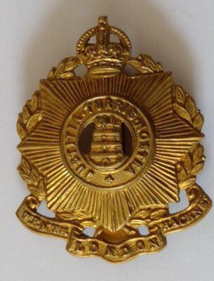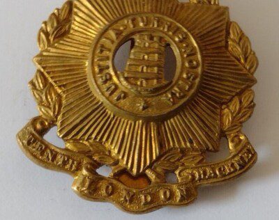 10th London Hackney Regiment Cap Badge KC All Brass Slider maker JR Gaunt VINTAG