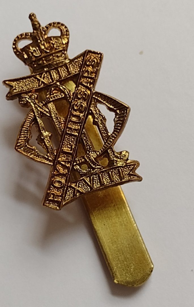 13th/18th Royal Hussars Cap Badge QC EIIR Issued Brass Slider 30 mm Vintage