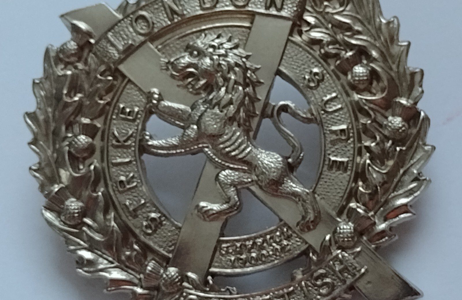 14th London Scottish Cap Badge White Metal 52 mm 2 Lugs Vintage Org