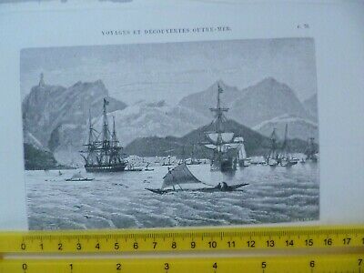 Seller note: Size approximately 160 mm x 100 mm - This picture is in very good condition. Suitable for Frame.. please study pictures carefully to decide. Voyages et Decouvertes outre Mer - 1863 Port Louis Painting Photo -
