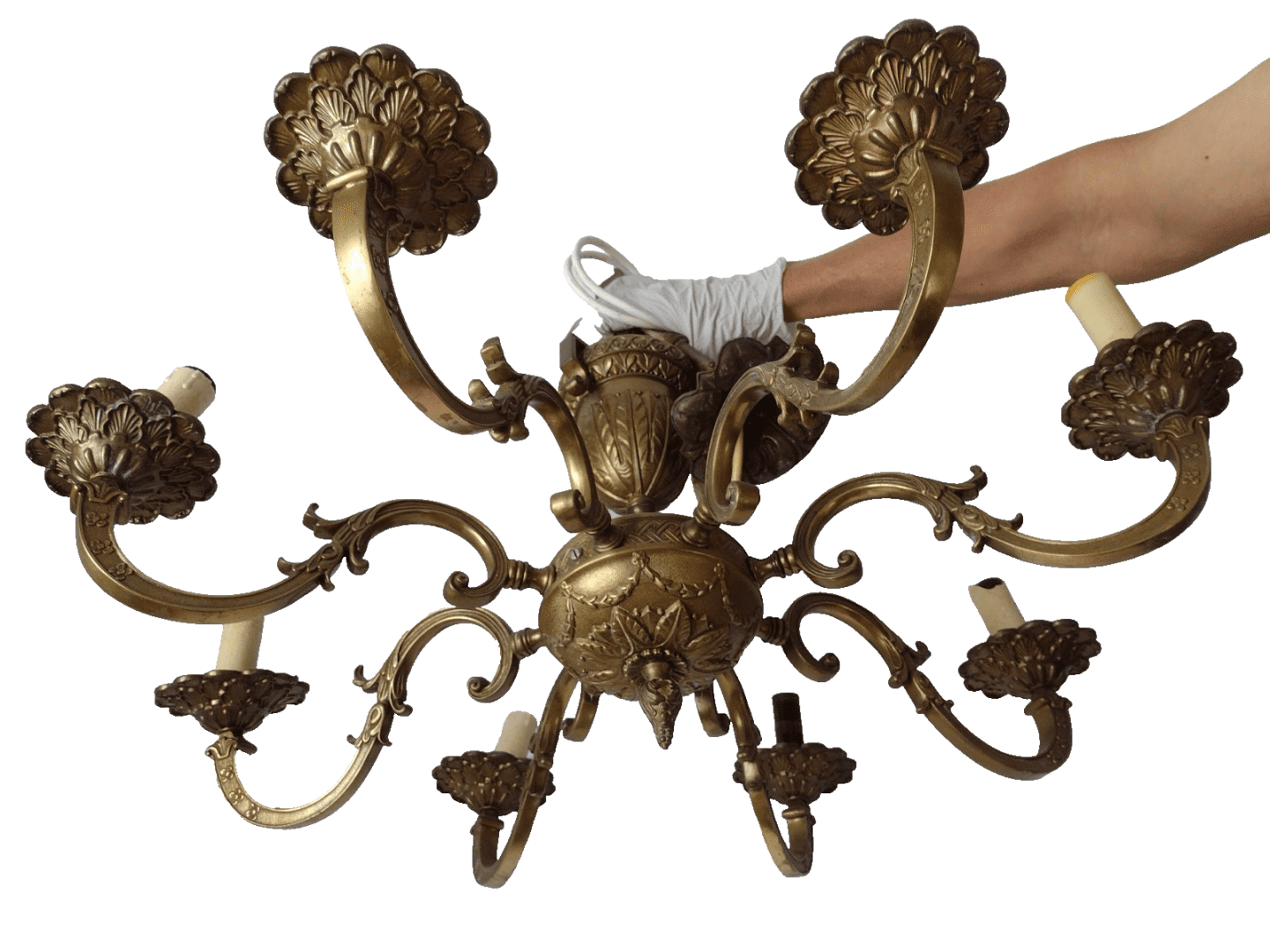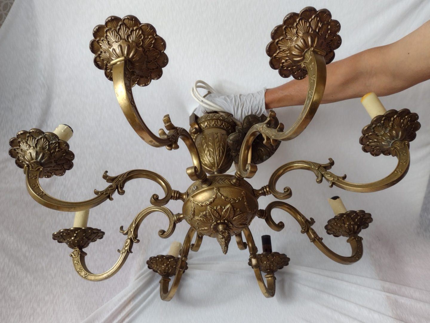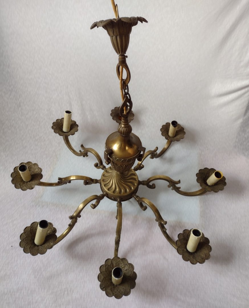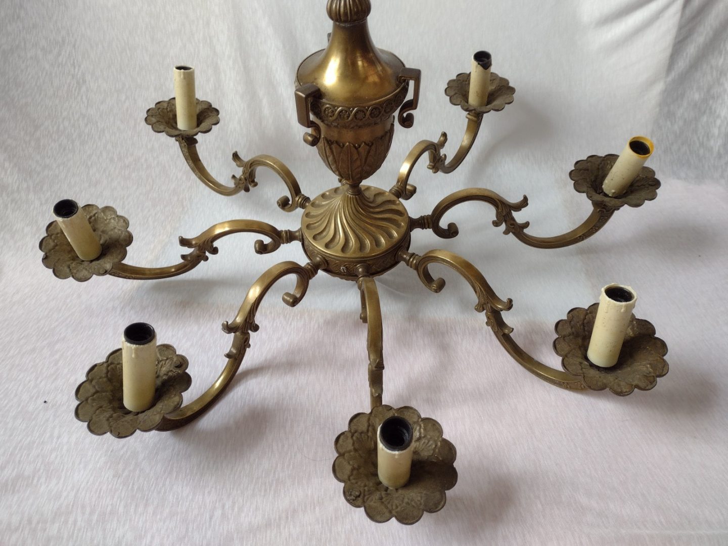18th Century French Heavy Solid Brass Chandelier 8 arms Large 57cm 7.5kg Antique