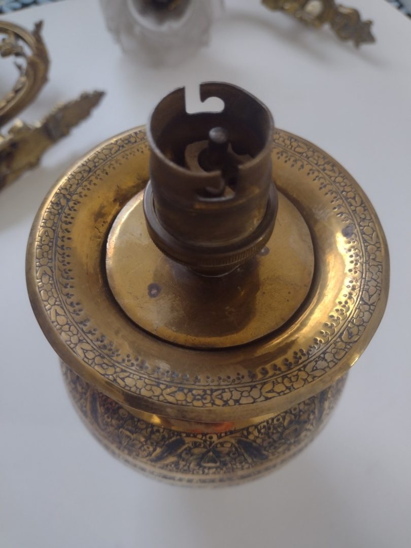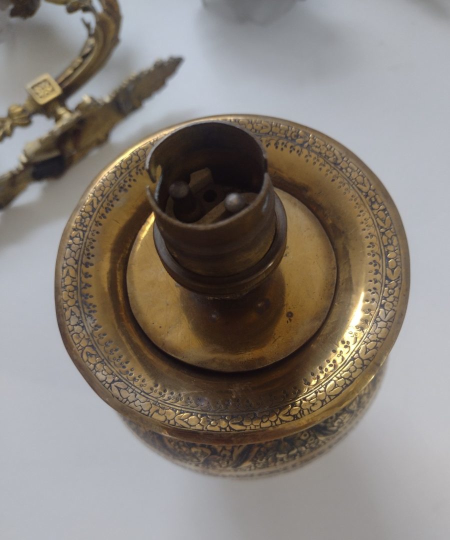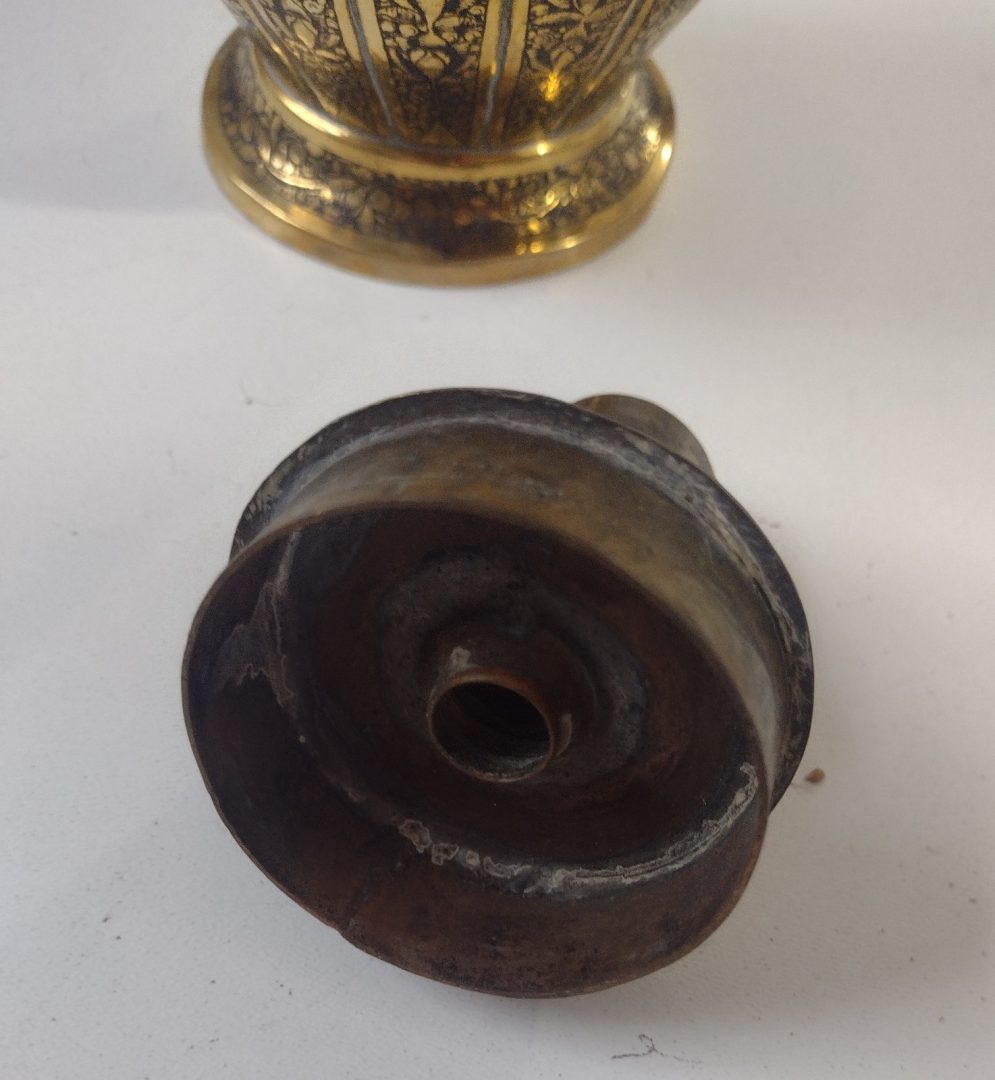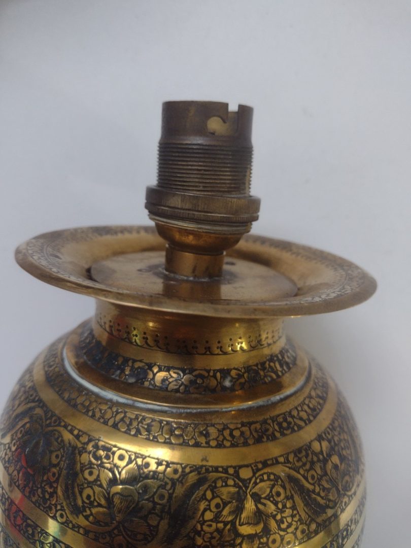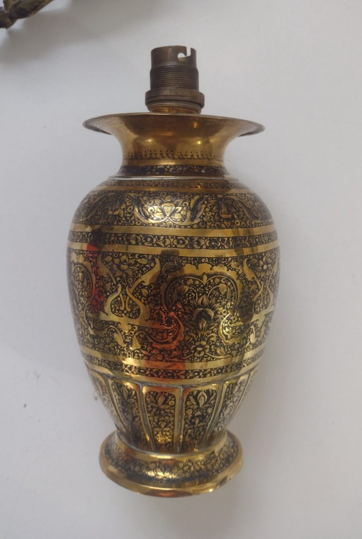 18th Century Solid Brass Vase into Table Lamp 23 cm Antique Rare