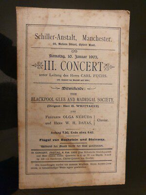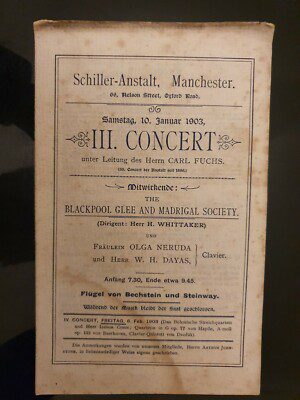 1903 Schiller – Anstalt, Manchester III. CONCERT Programme