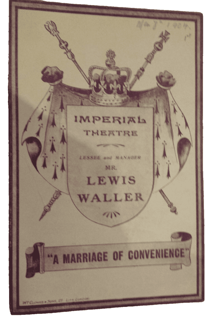 You are purchasing an original Vintage 1904 Imperial Theatre Programme: A MARRIAGE OF CONVENIENCE – Lewis Waller, Grace Lane.