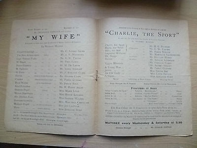 You are purchasing very collectable & original theatre programme of : Theatre Royal, Haymarket 1907- MY WIFE & CHARLIE, THE SPORT by Michael Morton