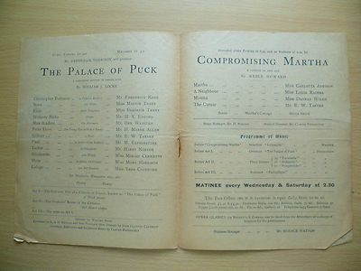 You are purchasing an original vintage theater Programme from: THEATRE ROYAL, HAYMARKET 1907- THE PALACE OF PUCK preceded by COMPROMISING MARTHA by William J Locke, date 8/5/1907