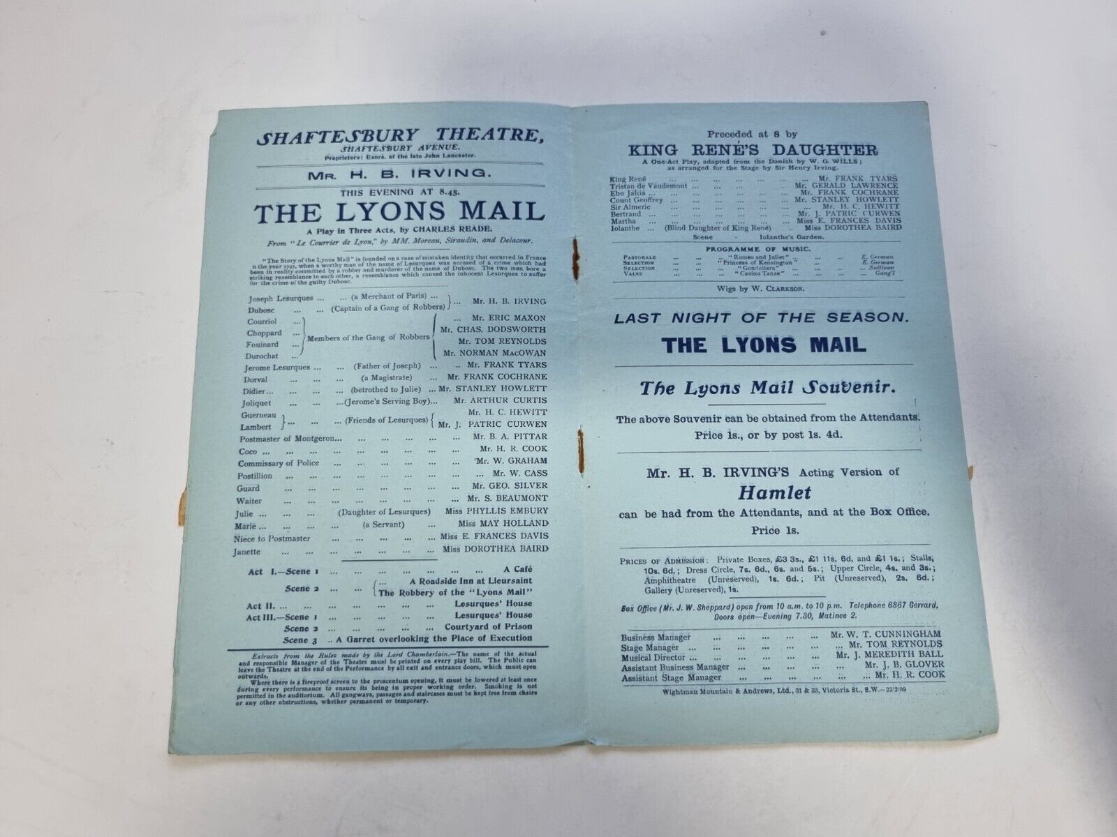 1909 THE LYONS MAIL – H B IRVING PHYLLIS EMBURY MAY HOLLAND ERICK MAXON