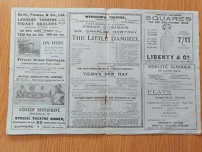 1909 THEATRE PROGRAMME THE LITTLE DAMOZEL / TILDA’S NEW HAT – CHARLES HAWTREY