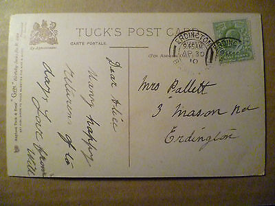 You are purchasing about 100 years old very collectable vintage Greeting Postcard A happy Birthday, Raphael Tuck & son S.2199.This postcard was used on 30 April 1910.