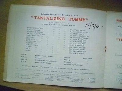 1910 Theatre Programme Tantalizing Tommy / The Toymaker Of Nuremberg Cyril Maude