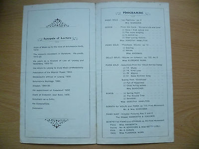 You are purchasing an original vintage 1911 Lecture Programme on- ROBERT SCHUMANN (1810-1856) by Wilhelm Schroder,1 Feb