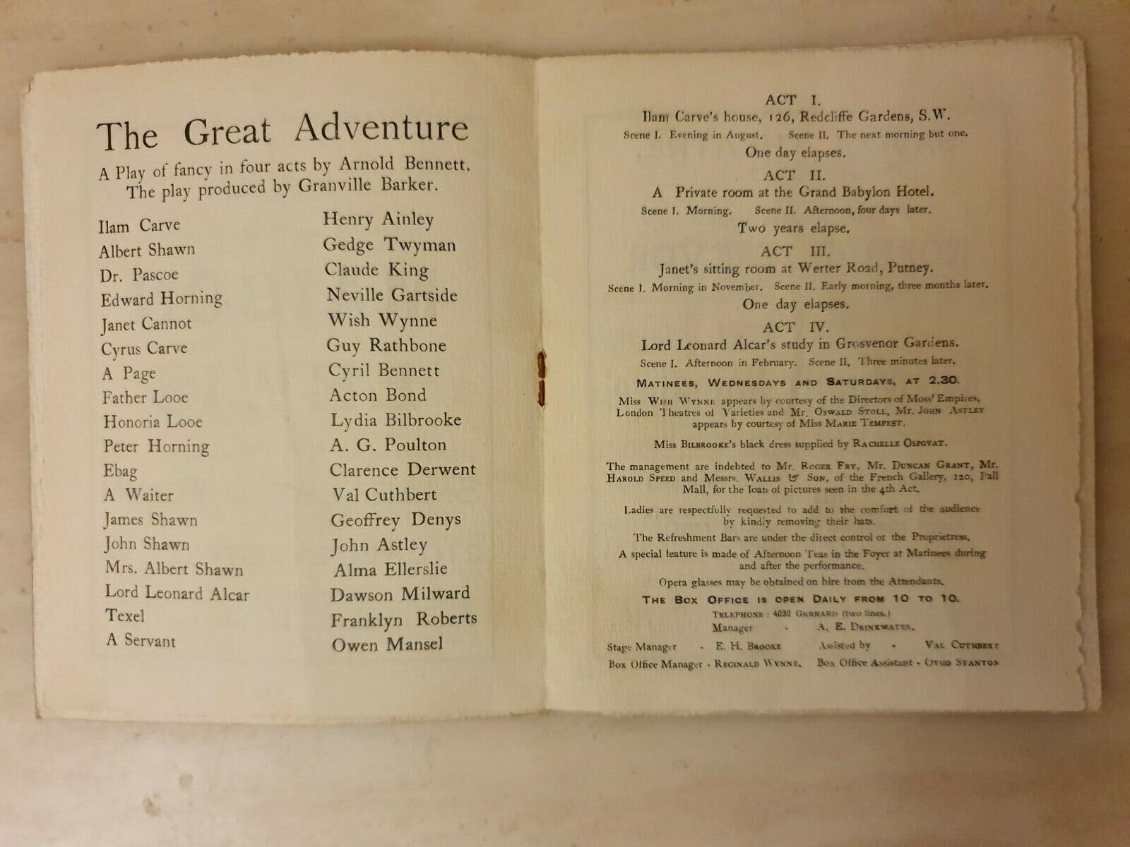 1913 KINGSWAY THEATRE: THE GREAT ADVANTURE – LILLAH McCARTHY GRANVILLE BARKER