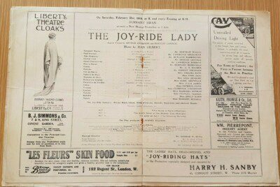 1914 Theatre Programme The Joy Ride Lady – Bertram Wallis Thelma Raye Enid Sass