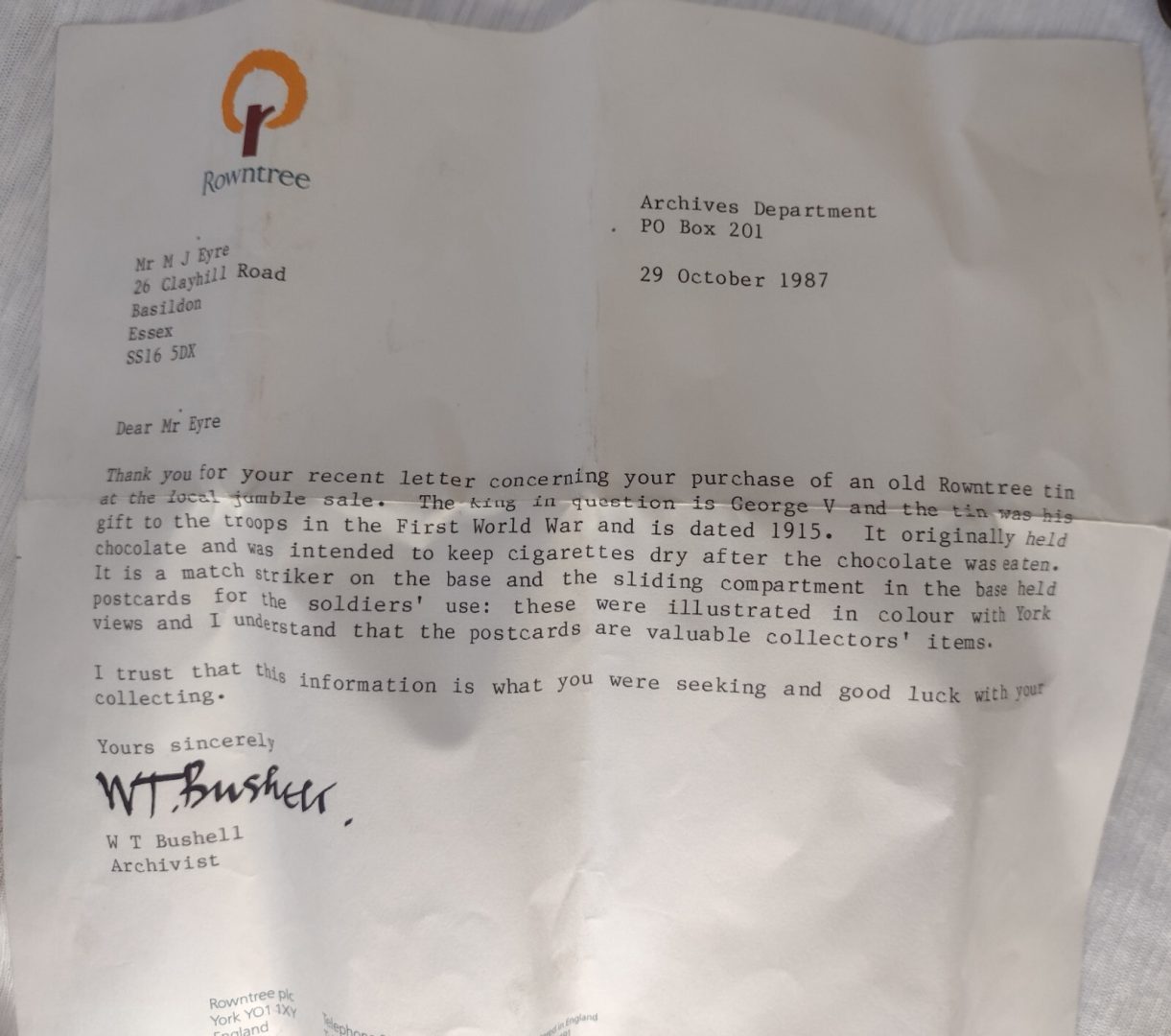 1915 Chocolate & Intended Cigarettes Tin By Rowntree & Co Super Antique Original