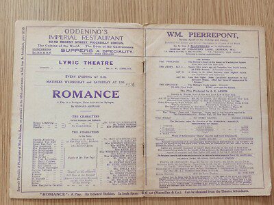 1916 Theatre Programme Romance – Dorothy Bellew Basil Gordon Annie Hill