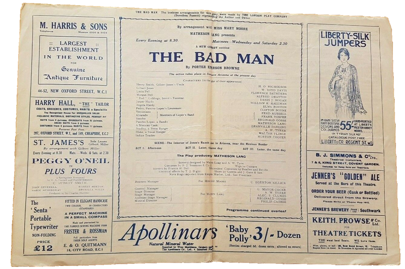 1919 Theatre Programme The Bad Man Florence Saunders Alfred Drayton Elma Royton