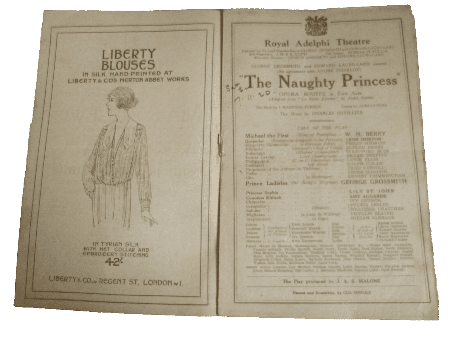 You are purchasing an original vintage very collcetable- 1920 THE NAUGHTY PRINCESS Opera Bouffe by J H Turner at ADELPHI THEATRE