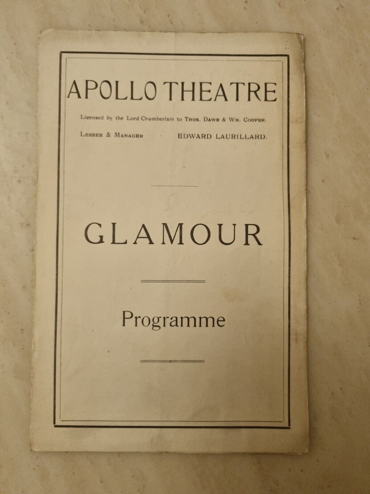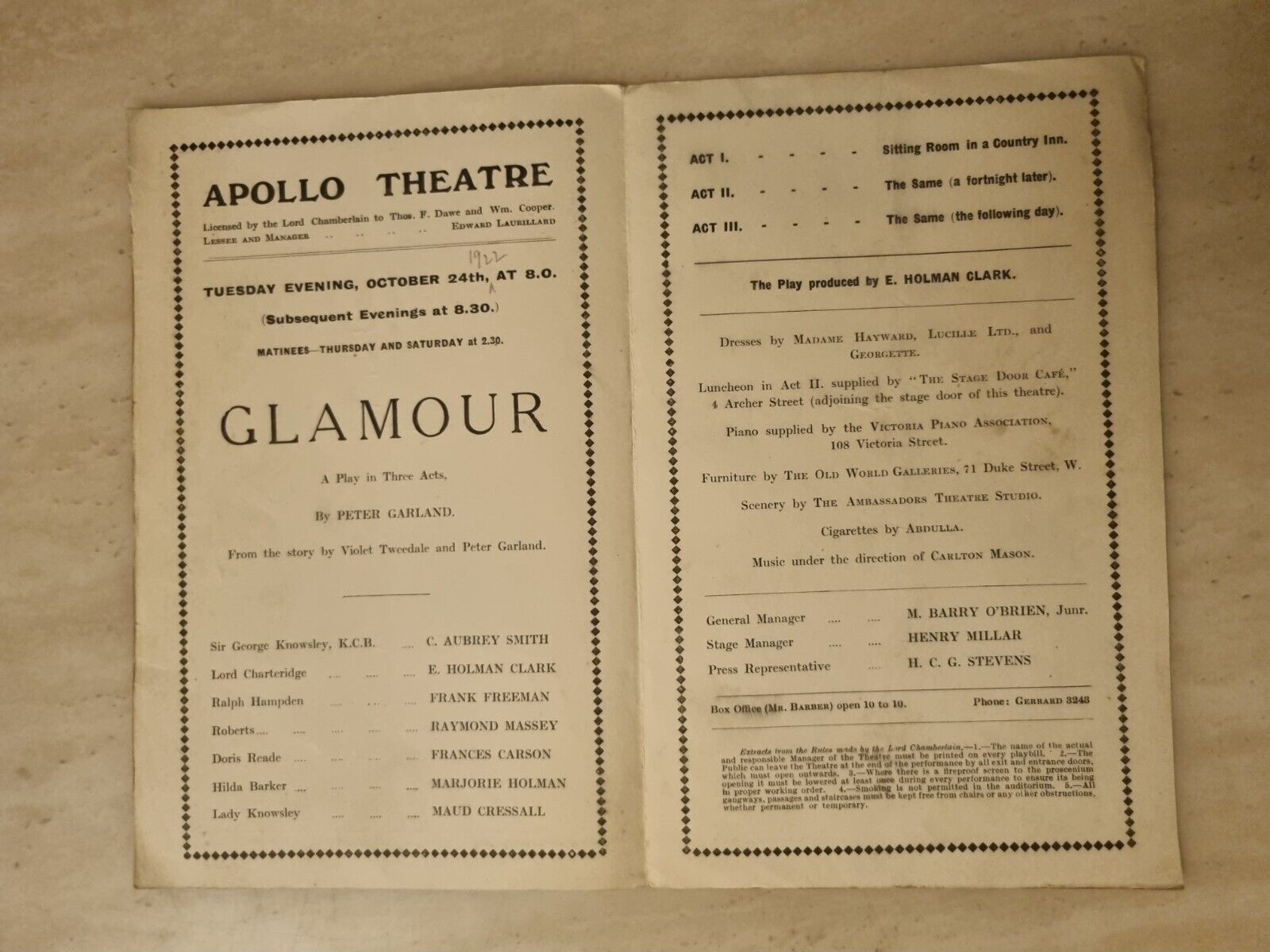 1922 Apollo Theatre: Glamour – C. Aubrey Smith Maud Cressall Frances Carson