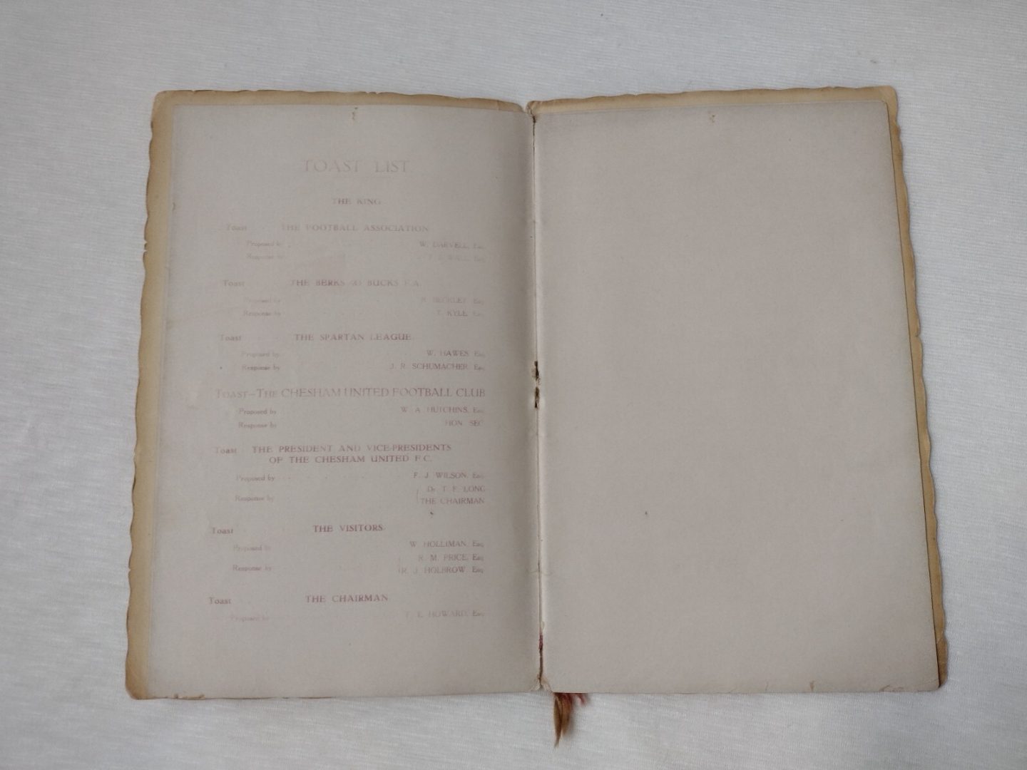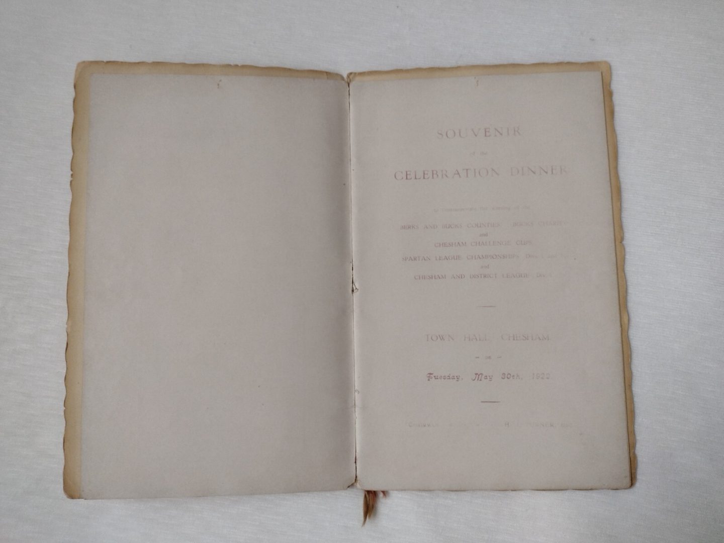 1922 Dinner Menu Chesham United FC Souvenir Celebration Dinner Menus – Rare