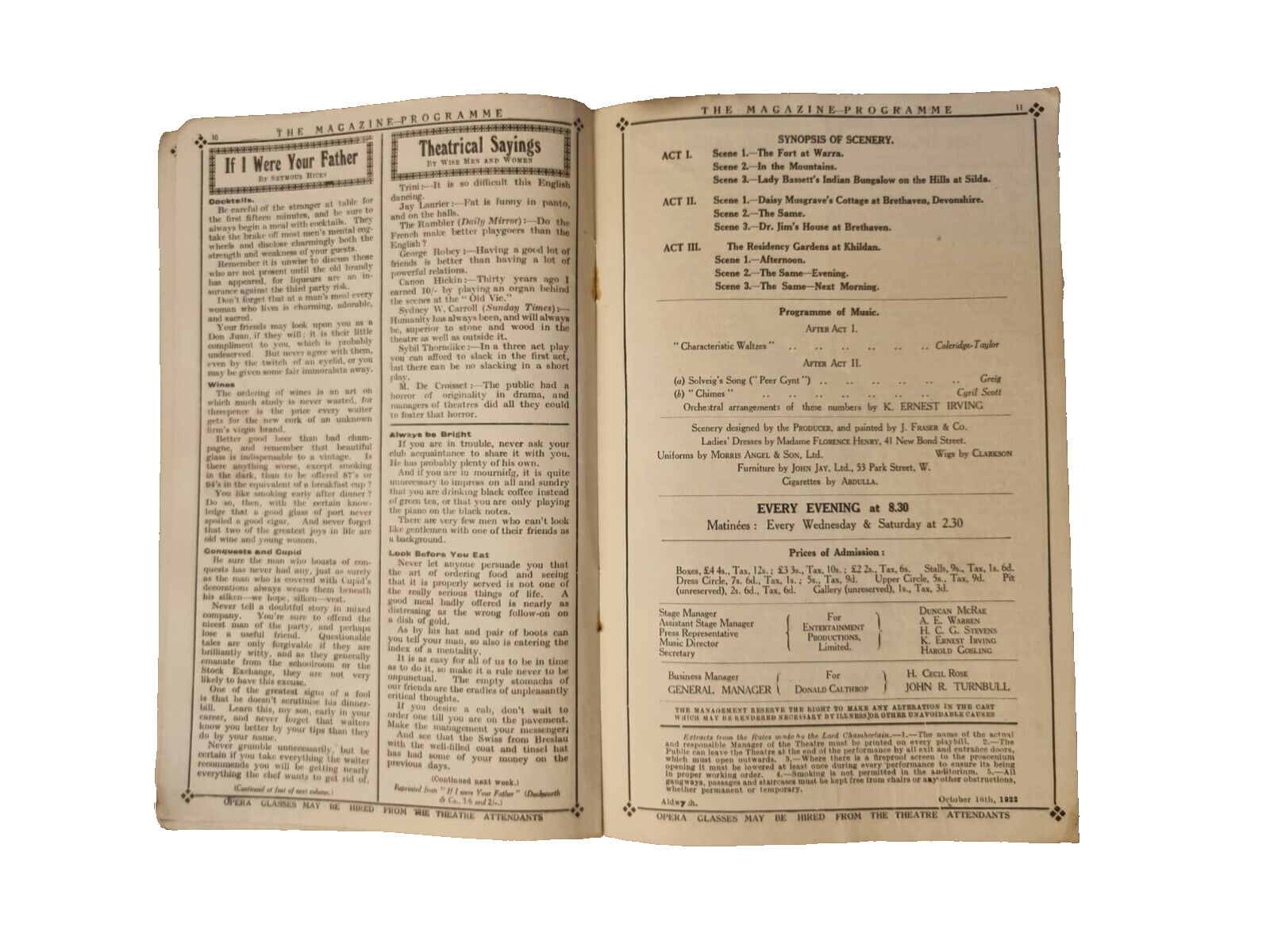 You are purchasing very Collectable & Original Theatre Programme. This lovely Rare Original over 100 years old theatre programme has rusty staples otherwise remains in very good condition for its age. Please see the picture as it forms part of the description. Please Check out my other items!