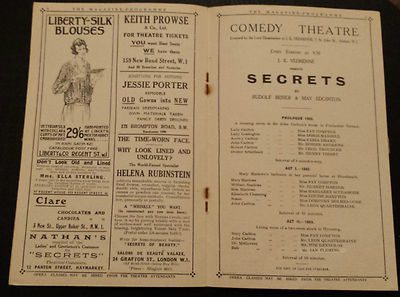 You are purchasing an original vintage very collectable Theatre programme: 1922 Comedy Theatre programme: “SECRETS” by Rudolf Besier & May Eddington