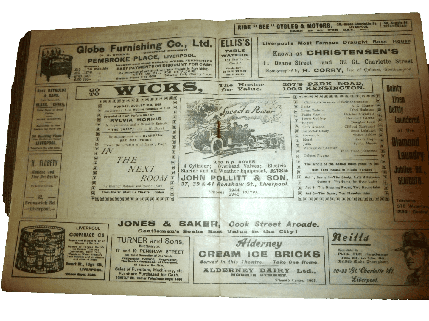 You are purchasing vintage & Original programme. 1925 Shakespeare Theatre : Sylvia Morris in – In The Next Room. This lovely rare vintage programme has rusty staple and remains in very good condition for its age. “Please see the picture as it forms part of the description. Please Check out my other items!