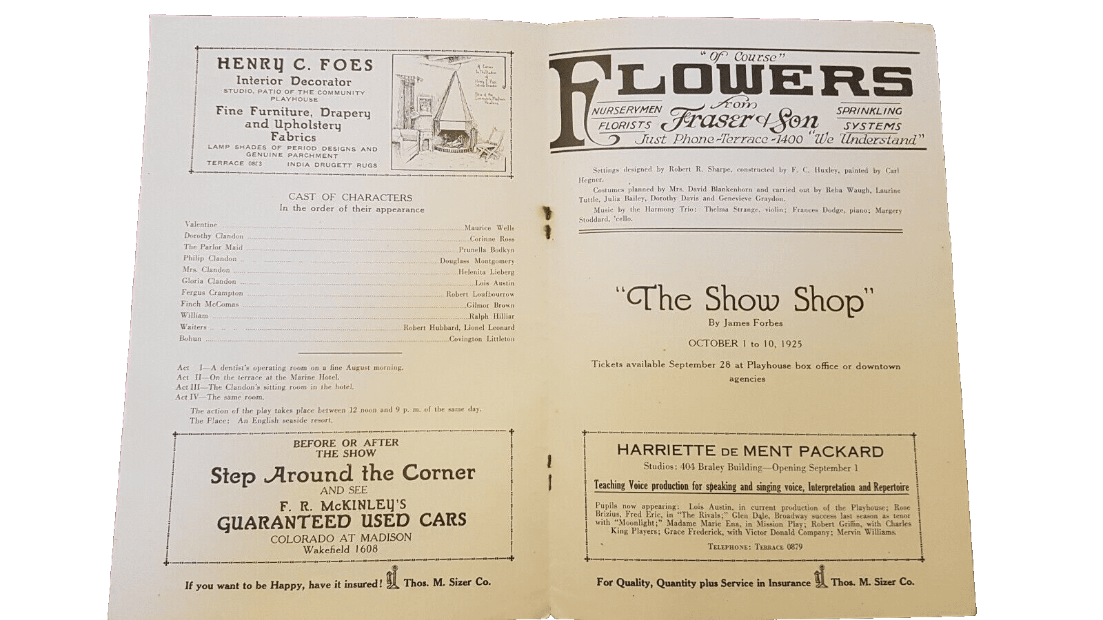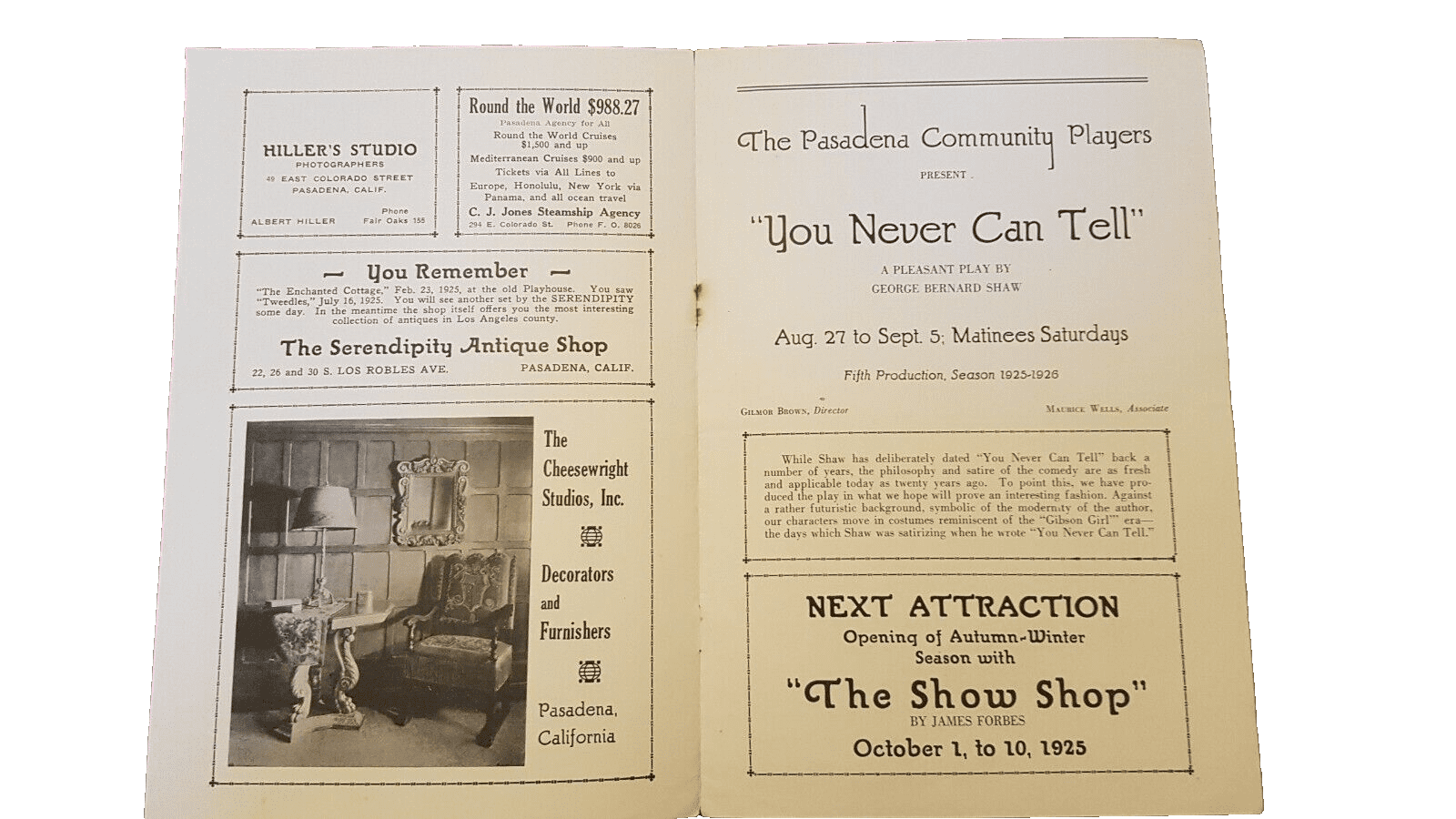 1925 Theatre Prog. You Never Can Tell – Maurice Wells Corinne Ross Lois Austin
