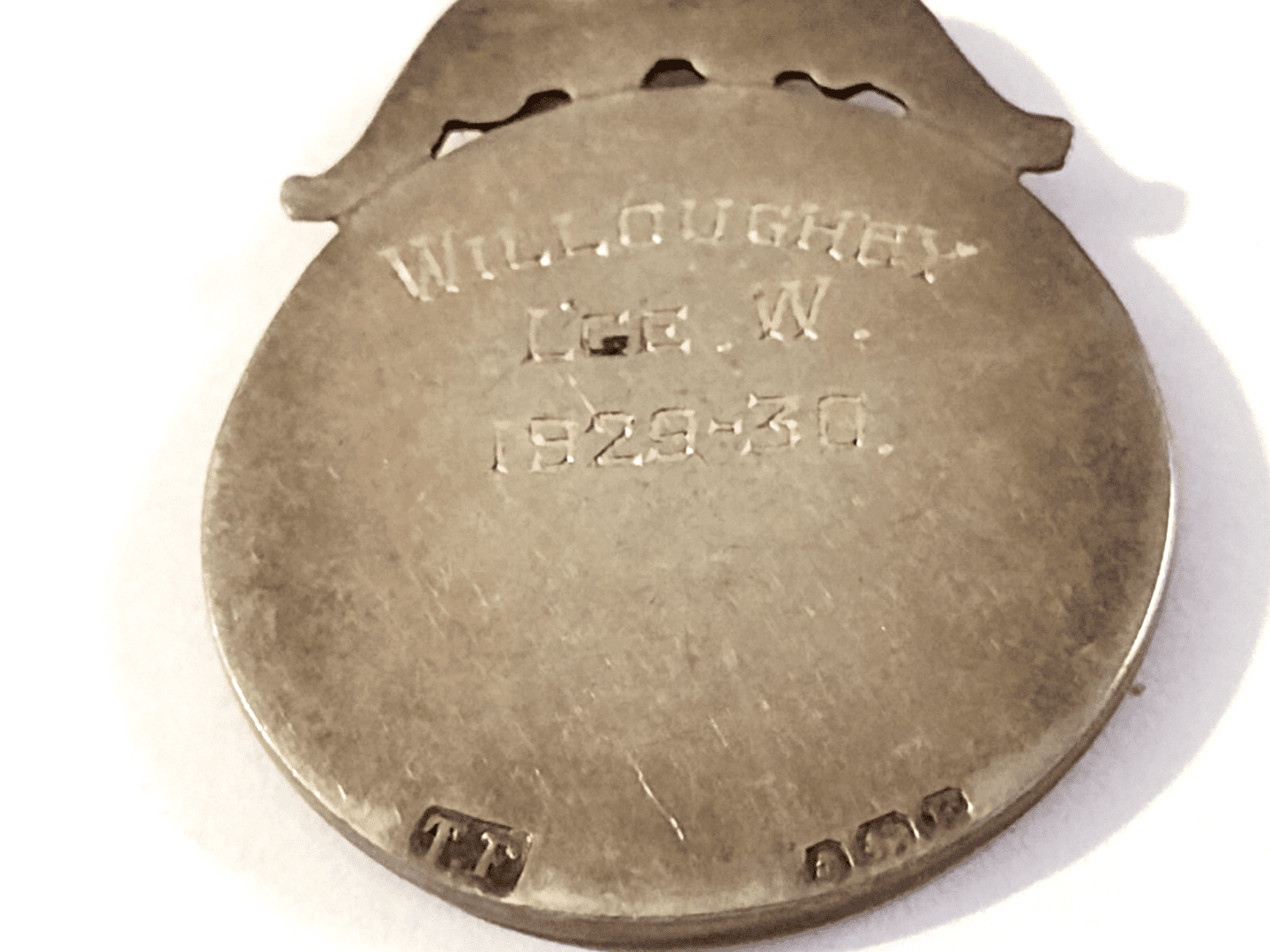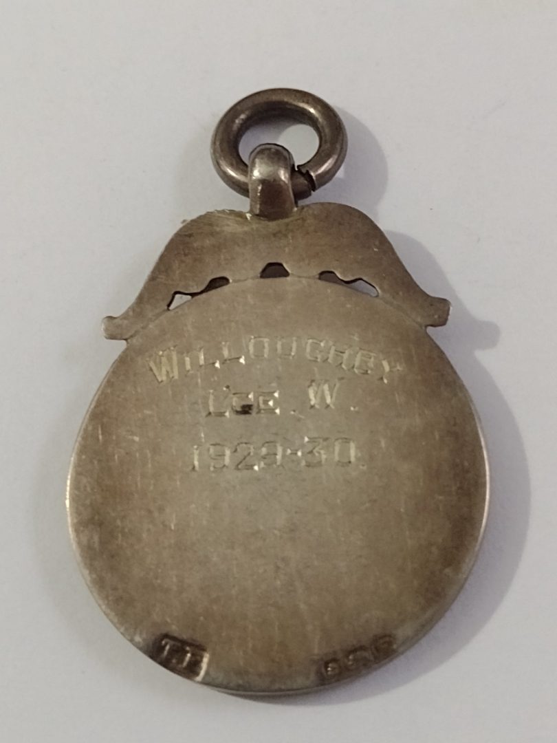Size approximately 32 mm tall and 25 mm wide…..I believe this is an original badge, in very good condition but showing genuine signs of age……The 1929-30 Football Willoughby League W refers to a hallmarked silver medal (or “fob”) associated with a local amateur football competition, likely the Willoughby & District League, which was based in the Lincolnshire area of England. The “W” on the medal likely signifies that the recipient’s team were the Winners of the competition for that season. …..Please study pictures carefully to decide…