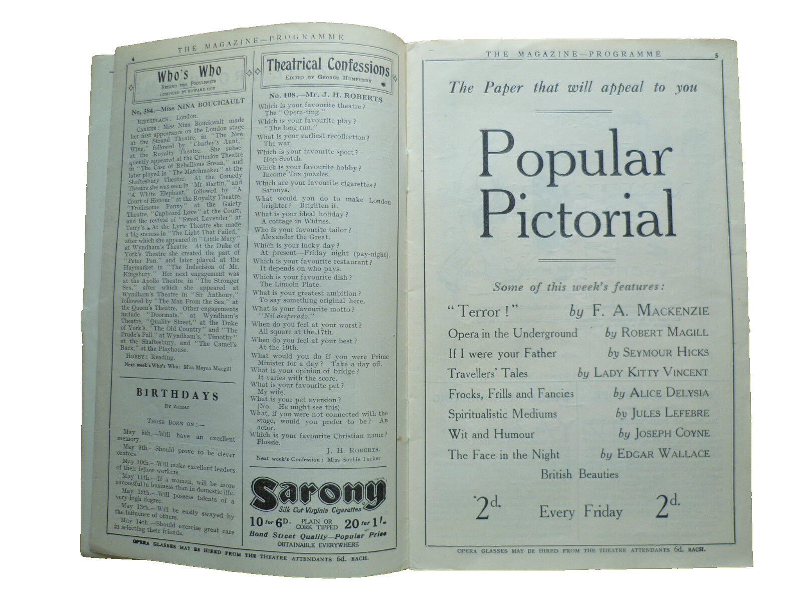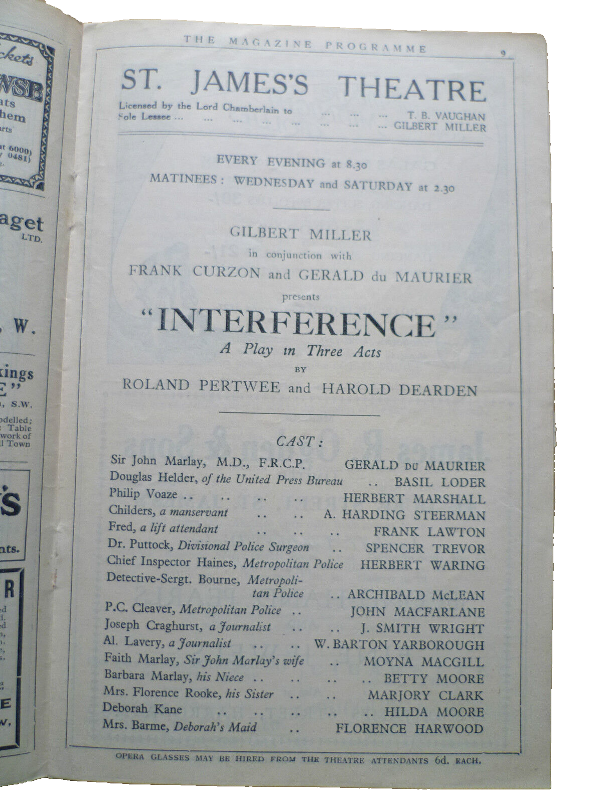 You are purchasing 117 years old an original vintage theatre programme from: ST. JAMES’S THEATRE PROGRAMME 1927- INTERFERENCE by Roland Pertwee & Harold Dearden