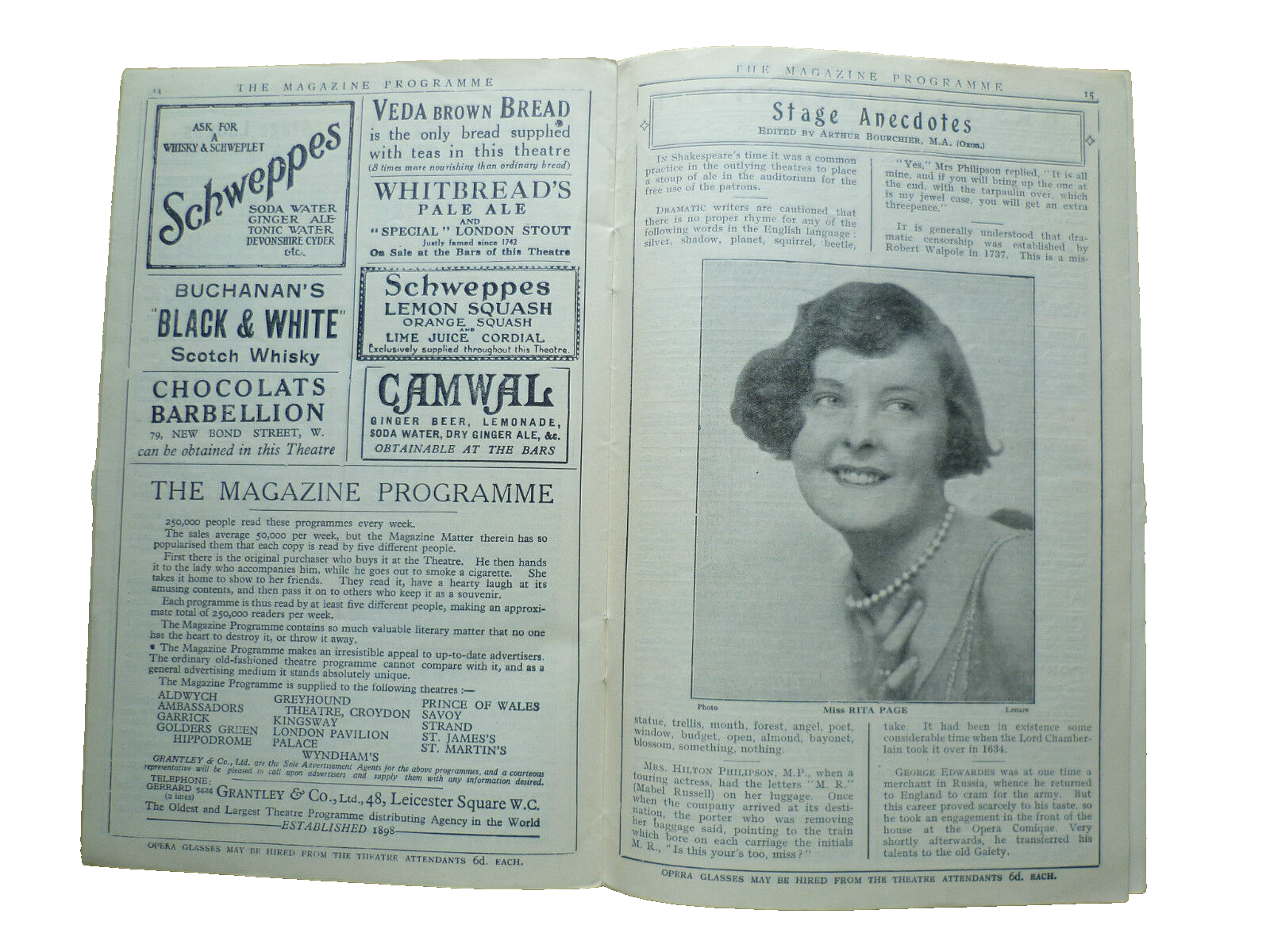 theatre/opera enthusiasts. This lovely programme has rusty staple you can see in picture otherwise is in