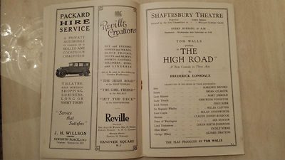 You are purchasing old the original vintage theatre programme from: 1927 SHAFTESBURY THEATRE: MARJORIE BROOKS – ALLAN AYNESWORTH in THE HIGH ROAD