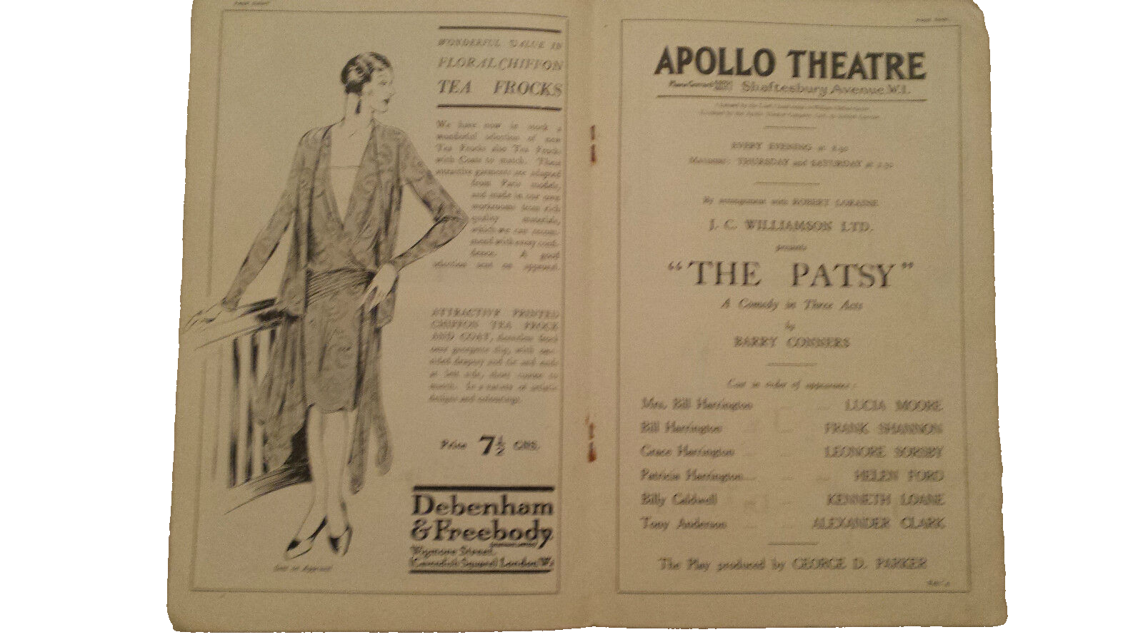 You are purchasing- Apollo Theatre Programme 1928- J. A. E. Malone’s THE PATSY by Barry Conners