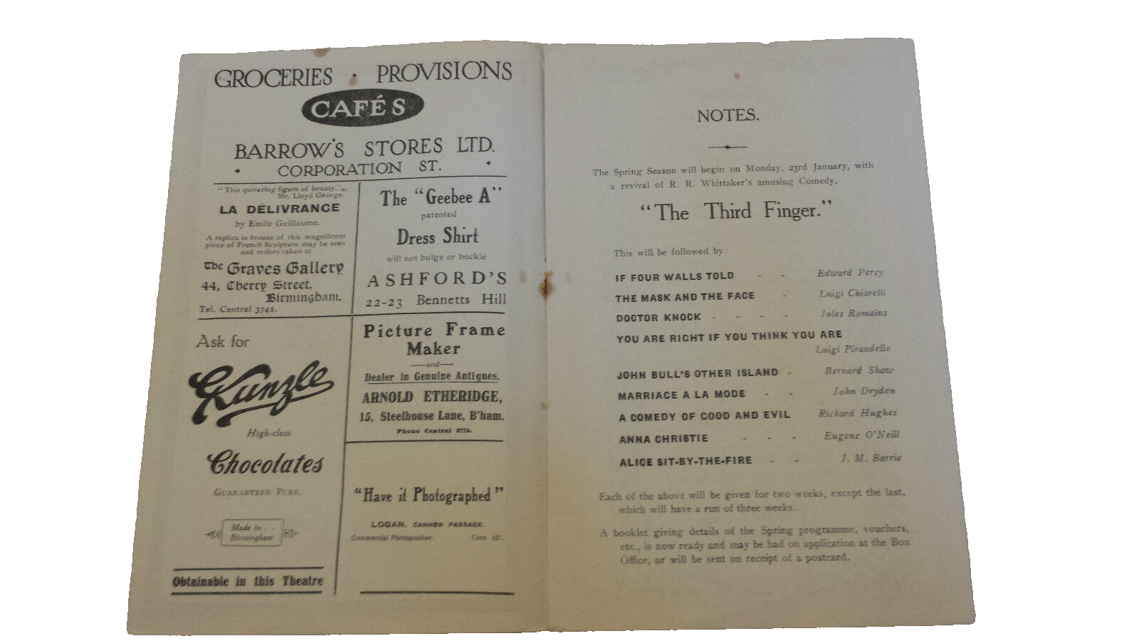 You are purchasing very collectable & Original : Birmingham Repertory Theatre Programme- WILLIAM PRINGLE – ANN BROWN – FELIX IRWIN in YELLOW SANDS
