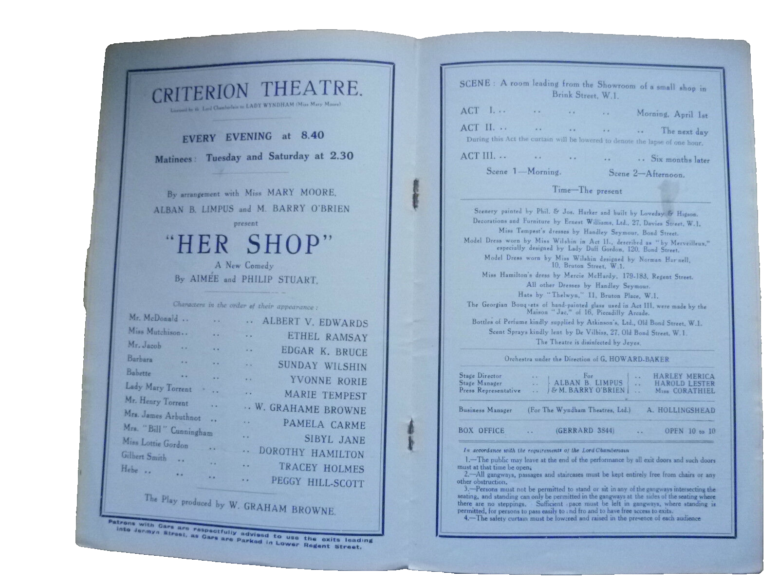 You are purchasing very collectable & original theatre programme of : 1929 Criterion Theatre Programme MARIE TEMPEST in HER SHOP by Aimee & P Stuart