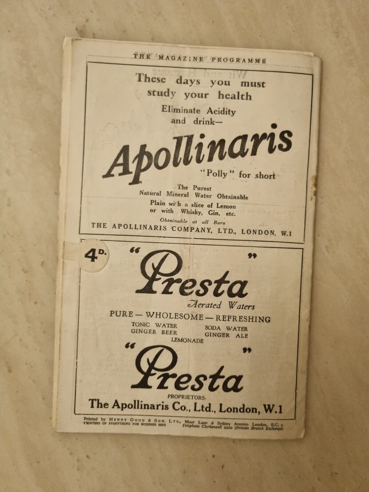 "This lovely Original Theatre programme has rusty staples otherwise remains in very good condition for its age. Please see all the pictures as it forms part of the description."