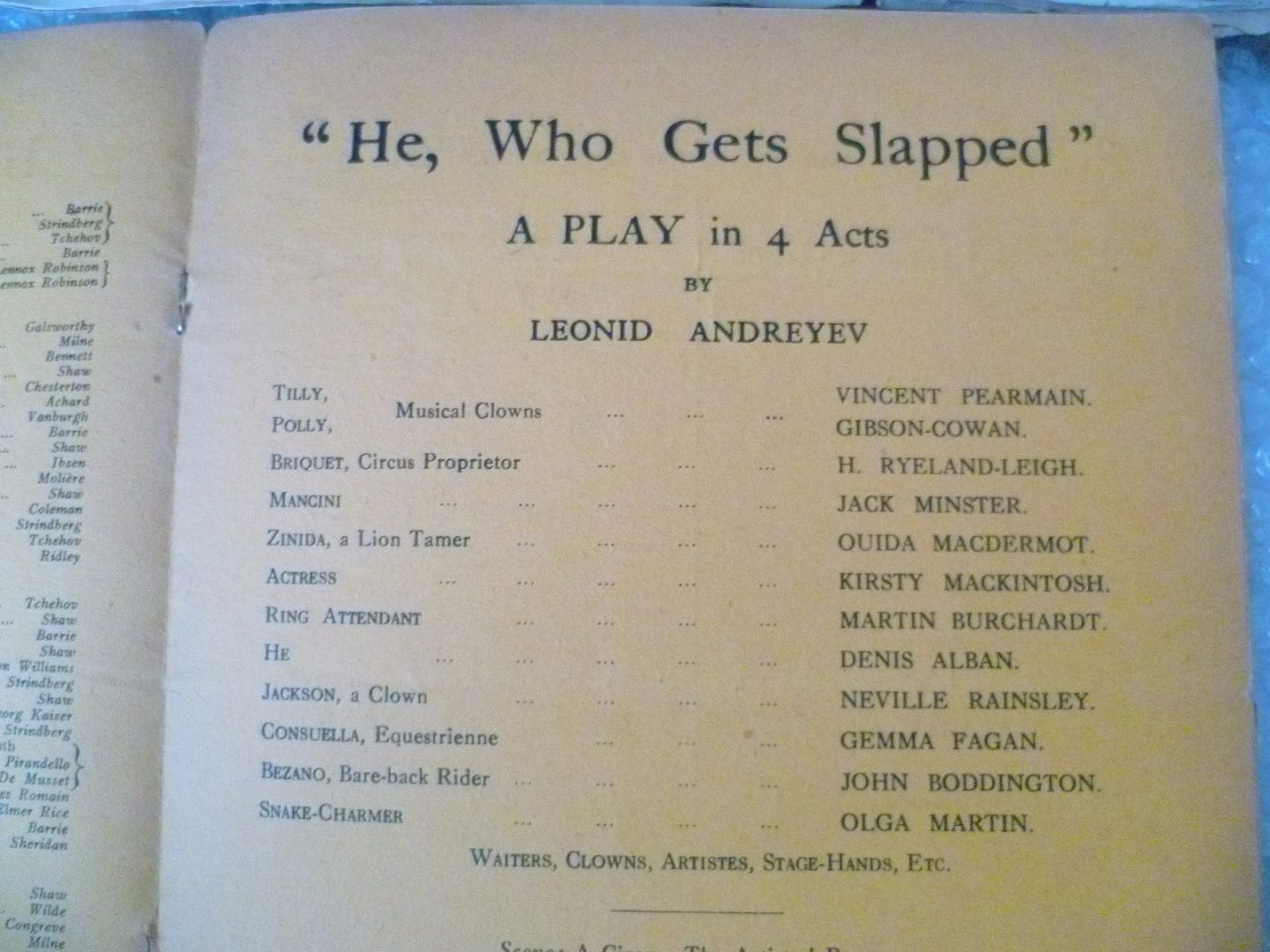 1929 Theatre Programme HE, WHO GETS SLAPPED- Leonid Andreyev, Denis Alban