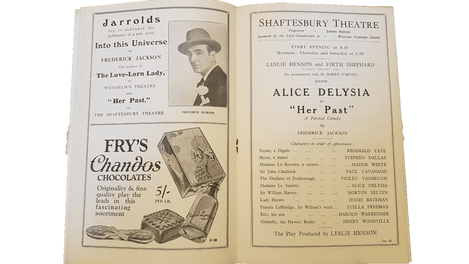 1929 Theatre Programme Her Past – Alice Delysia Paul Cavanagh Violet Vanbrugh
