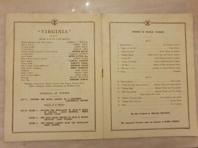 1929 Theatre Programme Virginia – Arthur Risco Babette O’deal Carlito Ackroyd