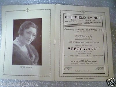 1930s Theatre Programme: Peggy Ann – Rita Page Claire Romaine Frank Hector