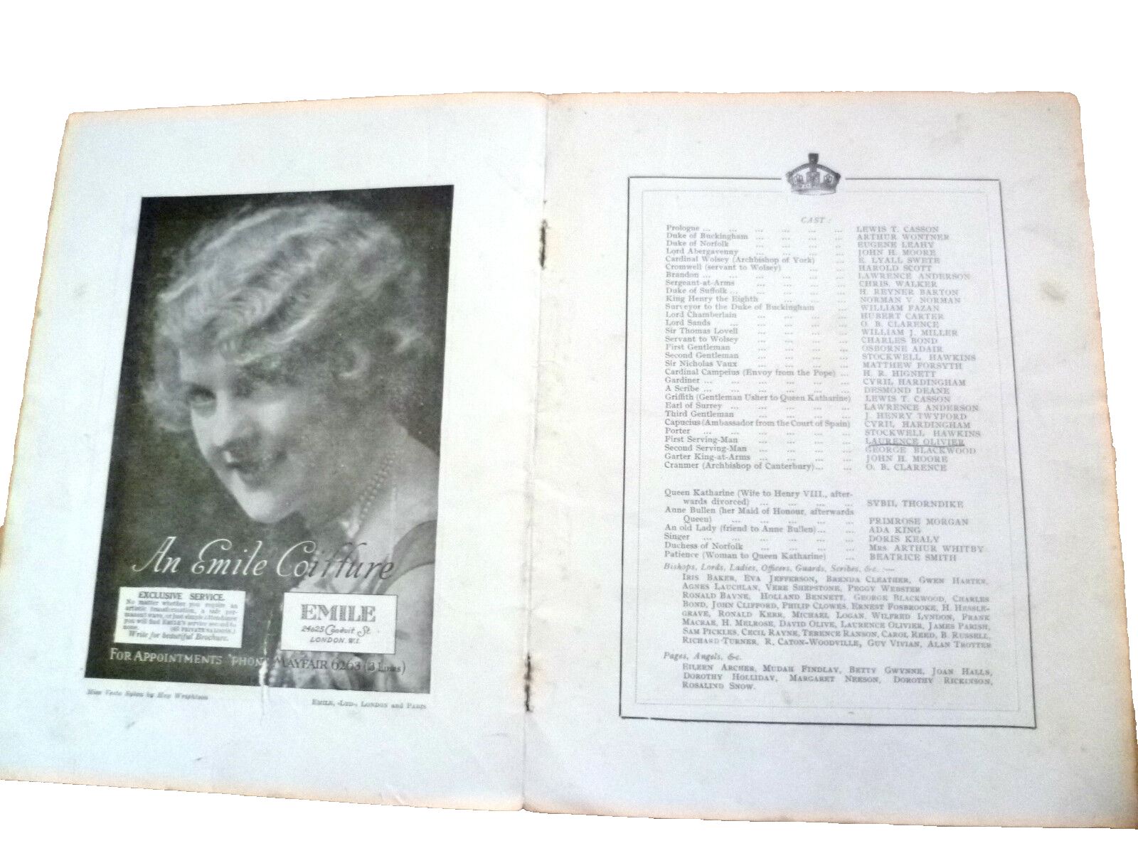 You are purchasing vintage & original programme of : Empire Theatre Programme- Sybil Thorndike’s Season HENRY VIII by William Shakespeare