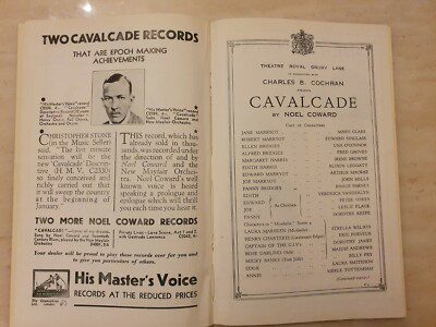 1932 PROGRAMME & TICKET CAVALCADE MARY CLARE EDWARD SINCLAIR UNA O’CONNOR