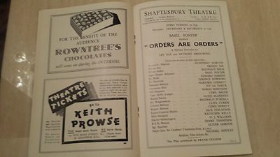 You are purchasing very collectable & original antique theatre programme. Shaftesbury Theatre: 1932 OLIVE BLAKENEY – CLIVE CURRIE in Basil Foster’s ORDERS ARE ORDERS. This lovely Original programme remains in very good condition for its age. Please see the picture as it forms part of the description.