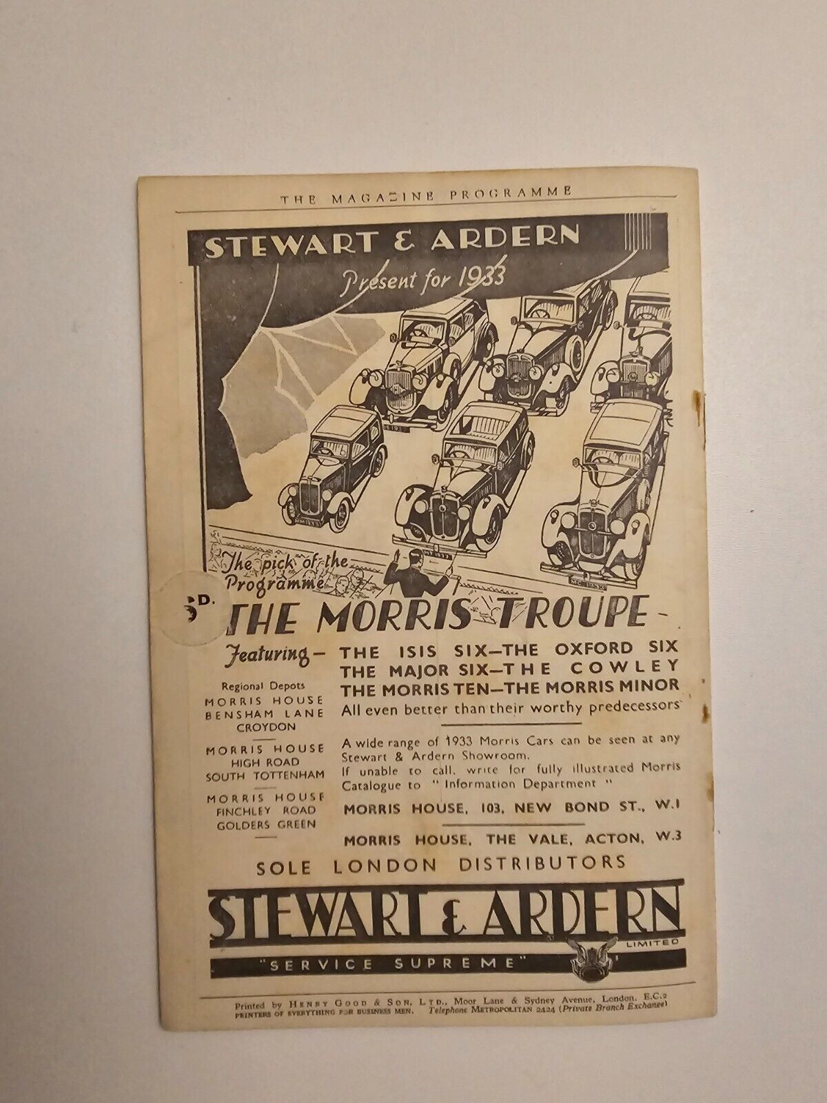 Seller note: This lovely Original programme has rusty staples otherwise remains in very good condition for its age. Please see the picture as it forms part of the description.
