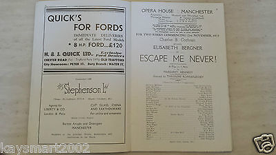 You are purchasing very collectable & Original : 1933 Opera House Manchester Programme – ELISABETH BERGNER in ESCAPE ME NEVER