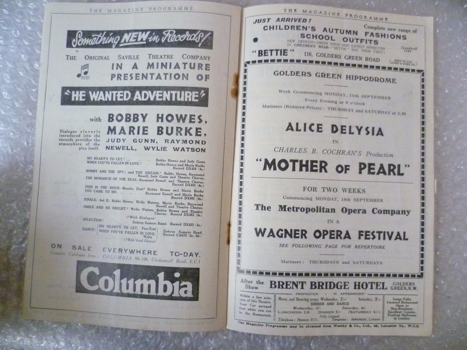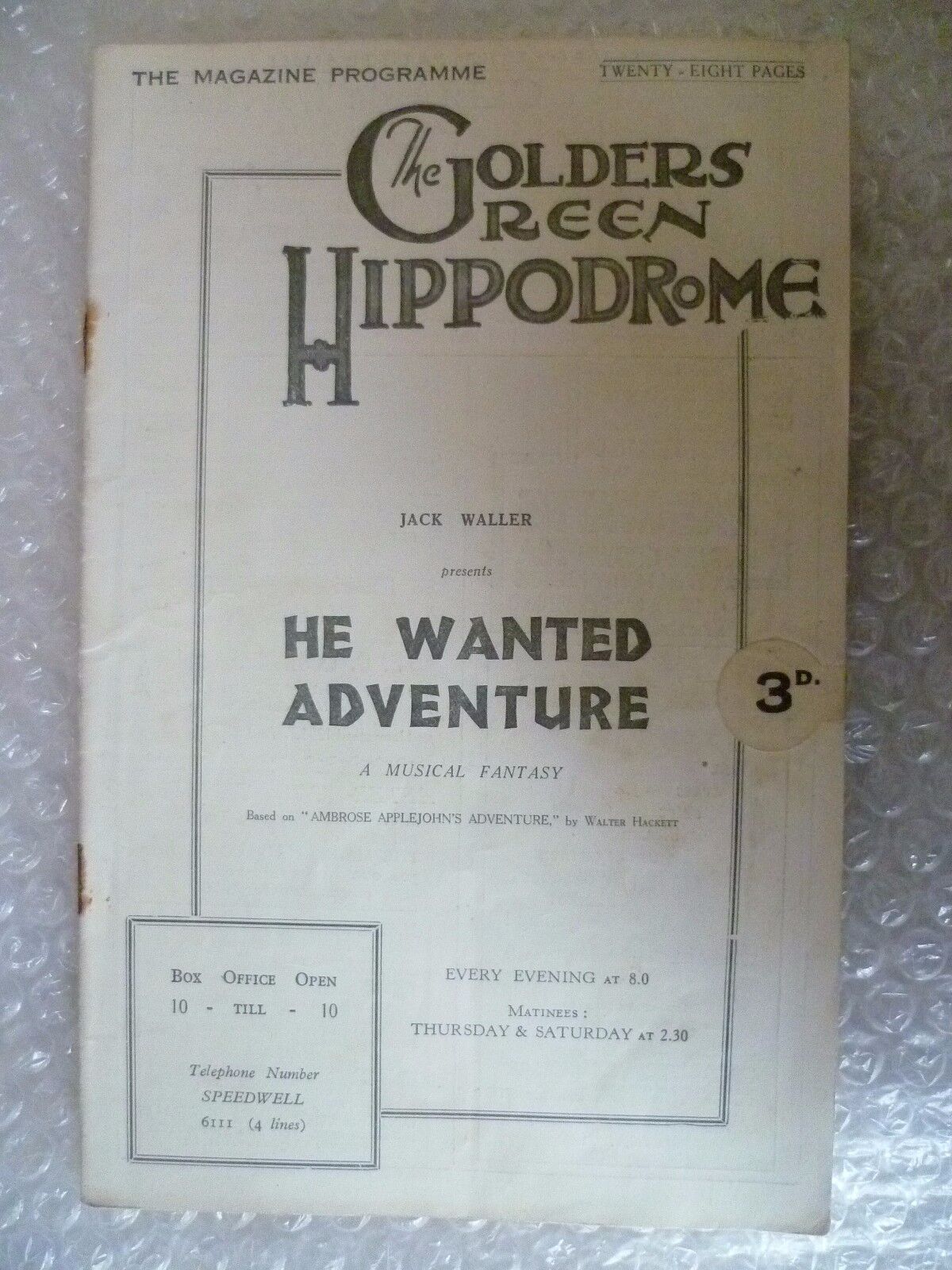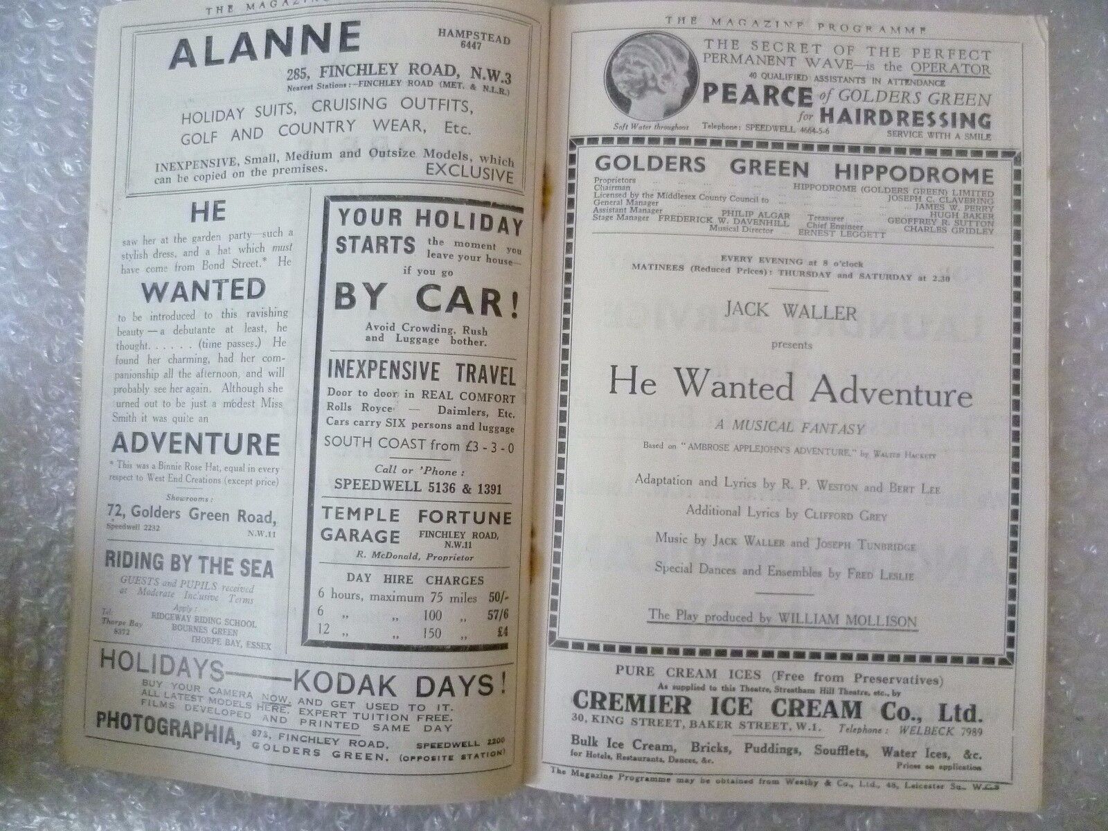 1933 Golders Reen Hoppodrome HE WANTED ADVENTURE a musical fantasy-J Waller