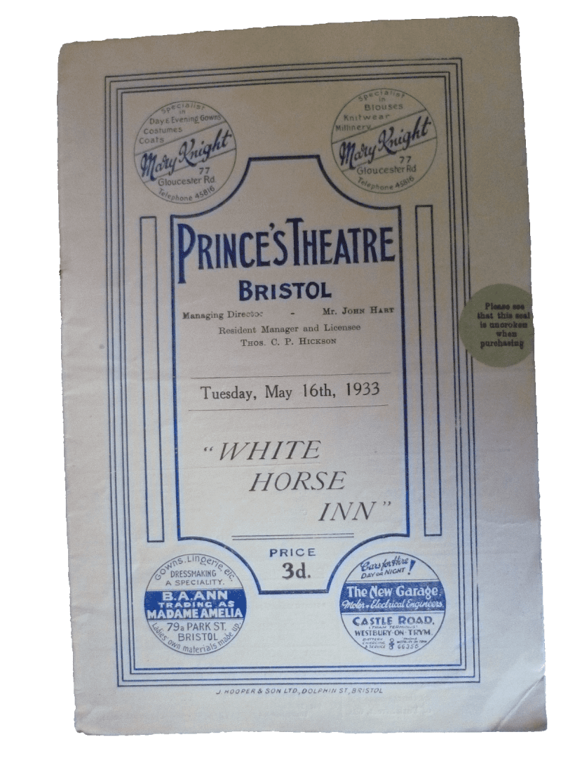 1933 Princes Theatre Programme WHITE HORSE INN-Betty French, Syd Walker,E Charel