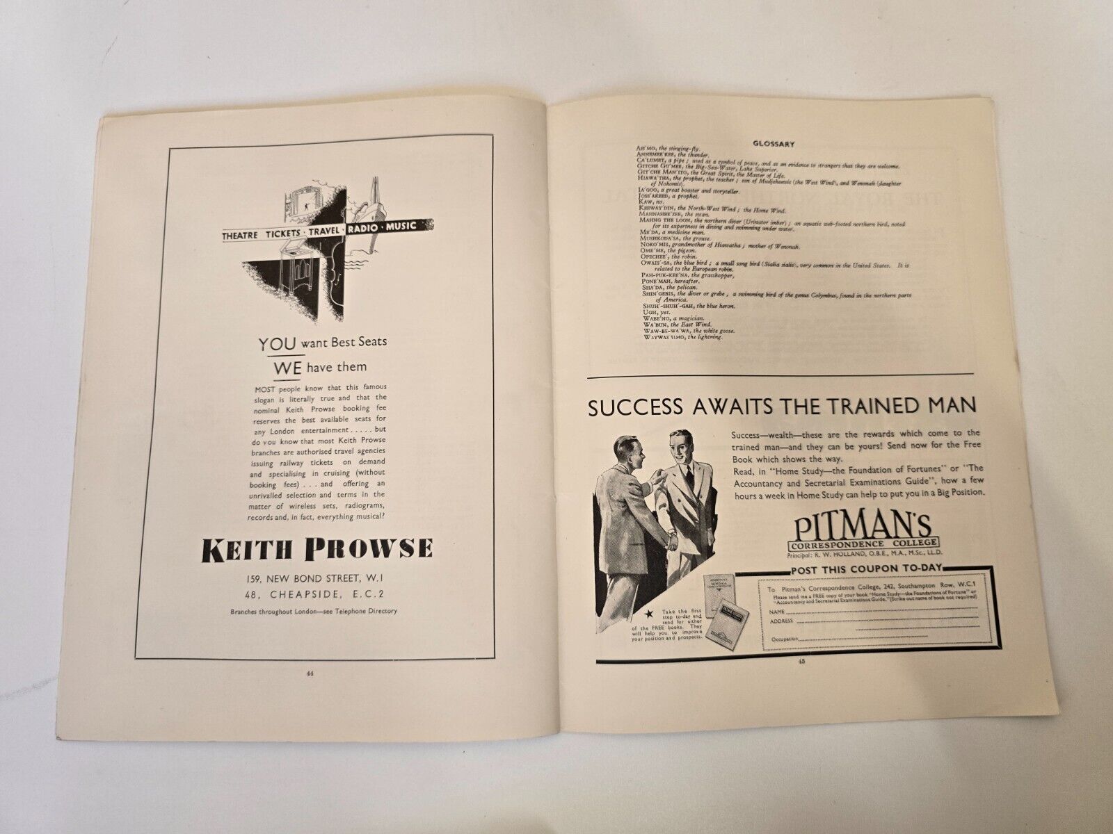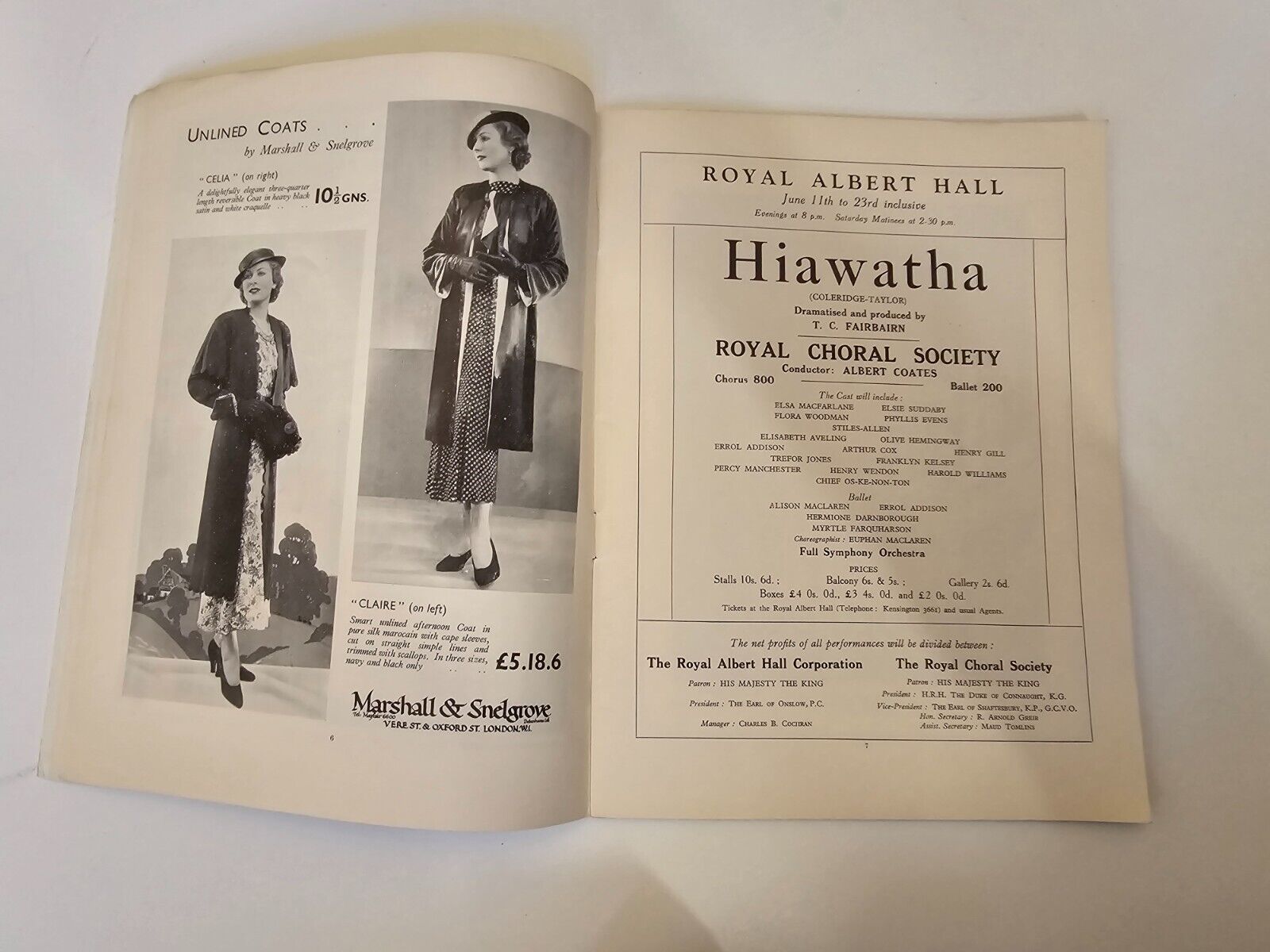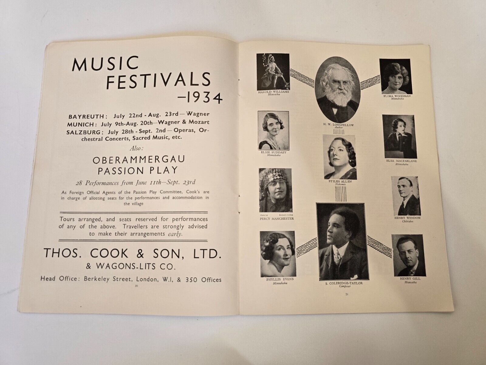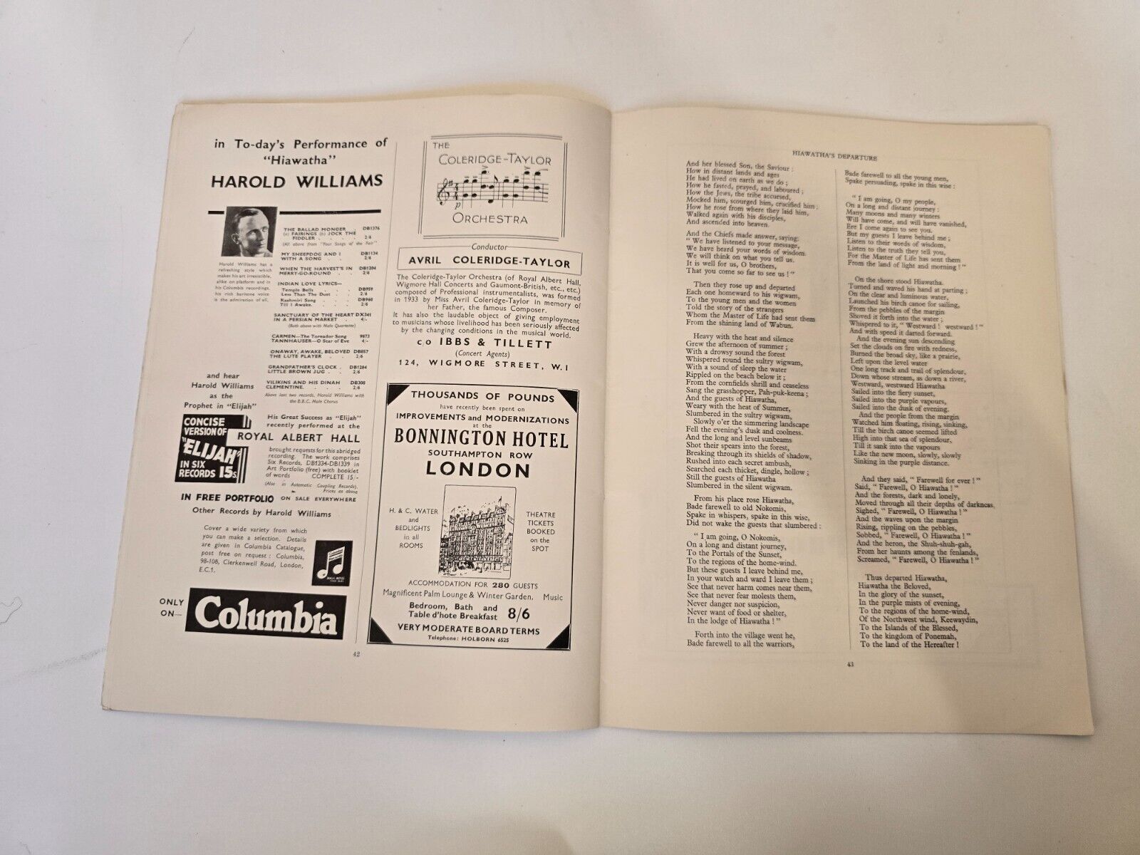 1934 Hiawatha Royal Albert Hall Souvenir Programme Harold Williams Elsie Suddaby