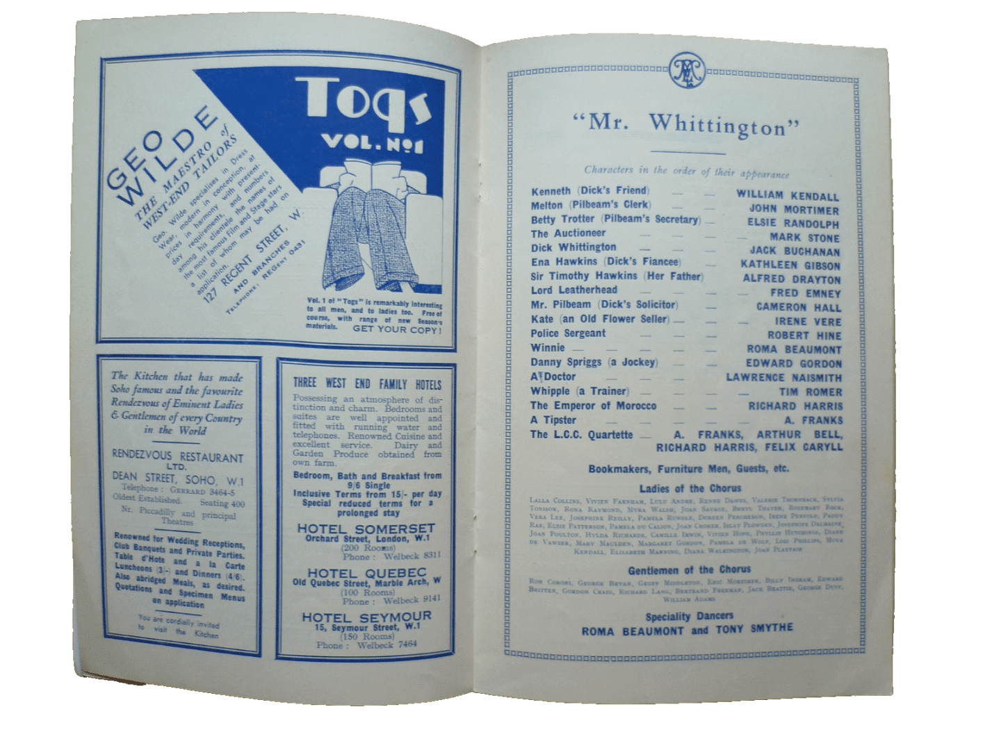 You are purchasing nearly a 100 years old an original vintage theatre programme from: LONDON HIPPODROME THEATRE PROGRAMME 1934- MR WHITTINGTON a musical Show