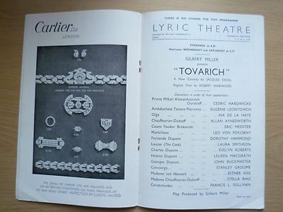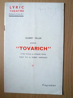 You are purchasing- LYRIC THEATRE PROGRAMME 1935- TOVARICH by Jacques Deval & Robert Sherwood